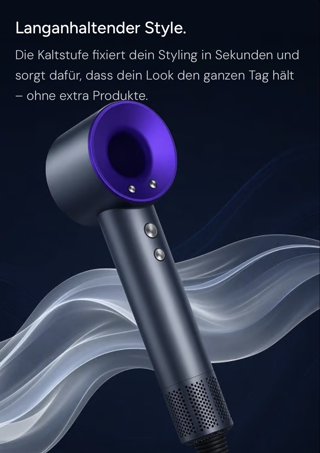 - 110.000 U/min Power: Der digitale V9-Motor bringt Turbo-Performance – für ultraschnelles Trocknen ohne Hitzeschäden.